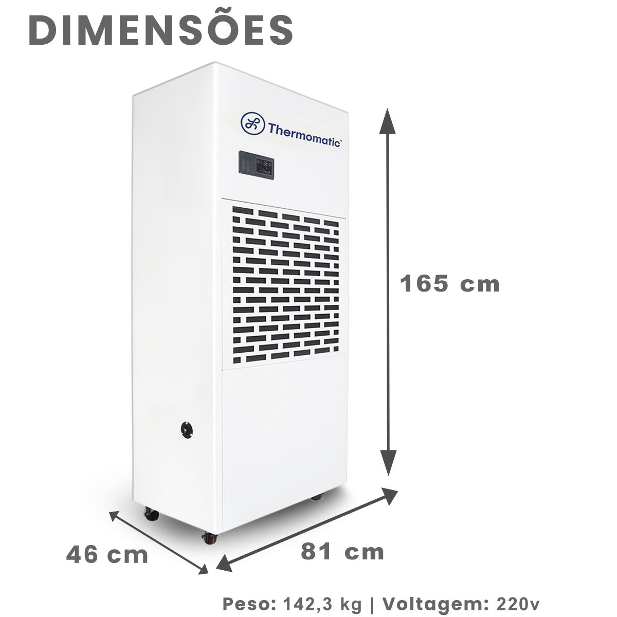 - Desumidificação (Litros/dia): 180L/D 30ºC 80%UR